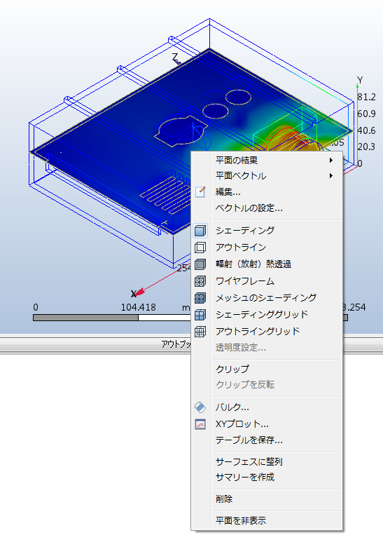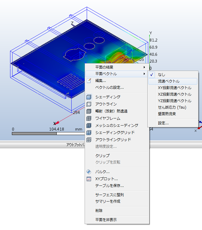 4. 平面のベクトルを表示するには、右クリックし、[平面ベクトル]を選択します。[流速ベクトル]をクリックします。