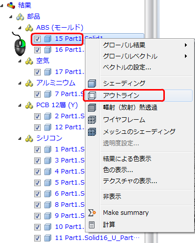 5. 平面がアウトラインとして表示されるまで、ベクトルを確認するのは困難です。右クリックして[アウトライン]をクリックします。