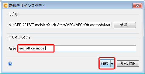 4. [新規デザイン スタディ]ダイアログ ボックスで、[名前]に名前を入力し、ボタン オプションが[作成]に設定されていることを確認して、[作成]をクリックします。