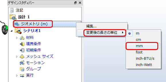 6. 読み込まれたジオメトリはメートル単位なので、これを mm 単位に変換する必要があります。これには、以下を行います: