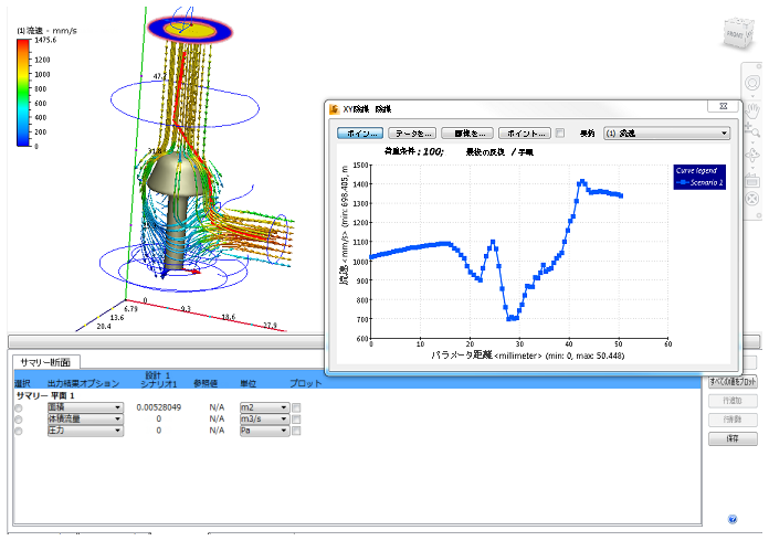 流れコントロールのシミュレーションでは、通常は流体が装置をどのように流れるかが表示され、さらに圧力損失と流量のいずれかが表示されます。