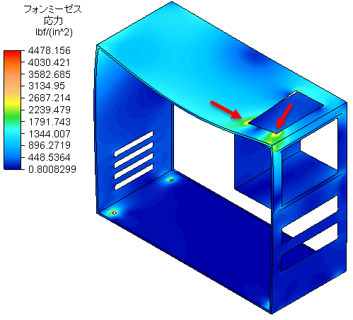 [フォン ミーゼス]をクリックします。応力の結果が次の図のように表示されます。