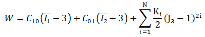 (高次の材料モデルおよび上記のポテンシャル方程式は、C10 および C01 としてそれぞれ最初の定数と 2 番目の定数を参照します。)