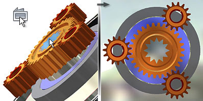 [ビュー正面]は、グラフィックス ウィンドウ内のモデルをズームおよび回転する場合に使用します。[ビュー正面]は、3 種類の機能の中から選択できます。