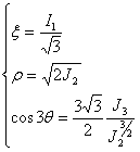 ここでは、I1=δijσij、J2=0.5SijSij、J3=(SijSjkSki)/3 および Sij=σij - (δijσkk)/3 です。