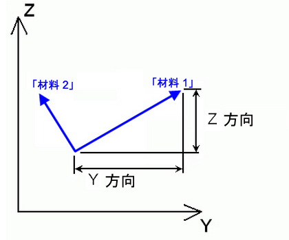 図 2: 材料軸の方向の Y および Z 方向の定義