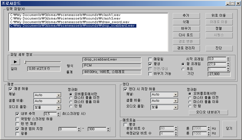 3ds Max에 프로사운드 대화상자가 열립니다.