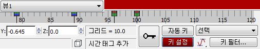 키 필터를 사용하여 개별 트랙을 선택적으로 작업할 수 있습니다. 예를 들어 트랙 뷰 상태에서 캐릭터 팔의 회전과 위치 트랙이 키 지정 가능한 경우 키 필터를 사용하여 위치 필터를 끄고 회전 트랙에서만 작업할 수 있습니다.