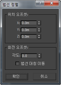 법선 정렬 대화상자에서는 현재 정렬을 조정하거나 취소할 수 있으며, 다음 컨트롤이 포함되어 있습니다.
