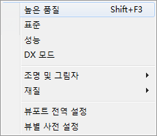 시각적 품질 옵션과 Nitrous 표시에 대한 전역 뷰포트 설정을 선택하려면 이 메뉴를 사용합니다.