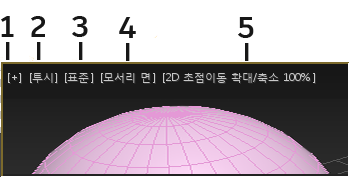 선택한 표시 드라이버에 따라 각 뷰포트에는 뷰포트 표시를 제어하는 최대 다섯 개의 일련의 메뉴가 왼쪽 위 구석에 포함됩니다.