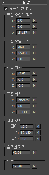 설정하면 노출 노드 오브젝트의 변환 값이 롤아웃에 표시되고 값이 변경되면 이에 따라 업데이트됩니다. 끄면 값이 표시되지 않지만 M 버튼은 계속 작동합니다.