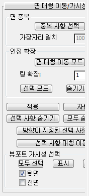 면 대칭 이동 버튼은 면 대칭 이동/가시성 롤아웃을 토글하며, 적용을 클릭하여 이 롤아웃을 닫을 수도 있습니다.