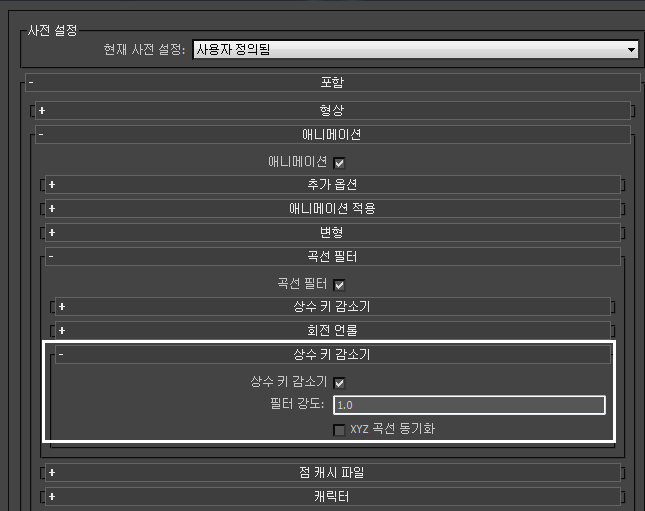 애니메이션에 있는 키의 수에 관계없이 모든 키를 FBX로 내보내려면 이 옵션을 비활성화합니다.