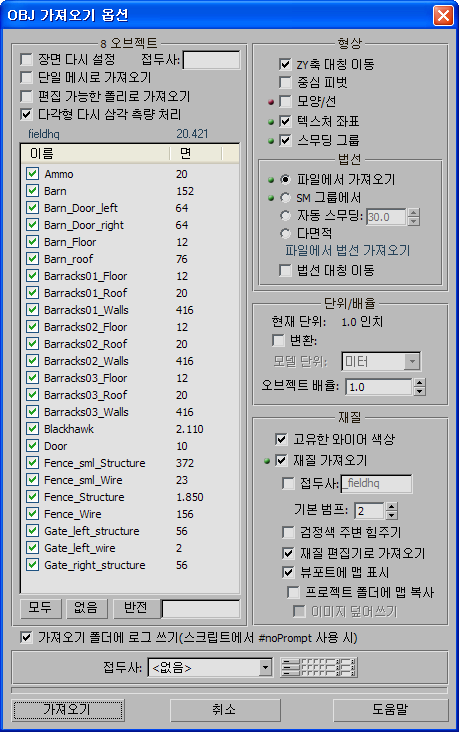 스크립트를 통해 가져오는 경우 OBJ 파일과 동일한 폴더에 로그 파일을 저장합니다.