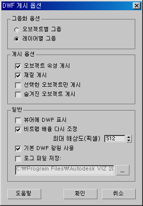 DWF 형식에 게시할 때 다양한 옵션을 사용할 수 있습니다.