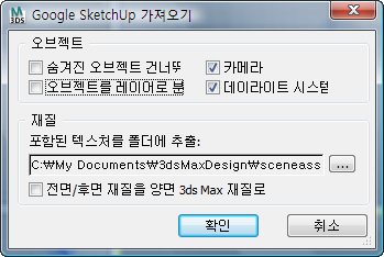 SketchUp 파일을 가져오기 위한 옵션을 제공합니다.