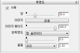 맵 사용활성 상태이면 반투명도를 제어하는 맵을 사용합니다. 슬라이더는 맵 버튼으로 바뀝니다.