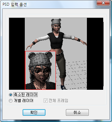 PSD 파일을 비트맵으로 열면 이미지 사용 방법을 선택할 수 있는 대화상자가 나타납니다.