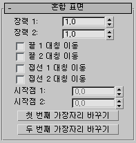 혼합 표면 하위 오브젝트가 선택되는 동안, 혼합 매개변수가 있는 롤아웃이 수정 패널 아래에 표시됩니다.