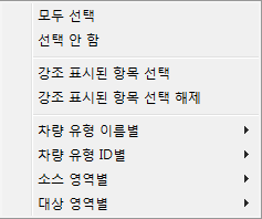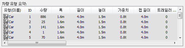 SIM 파일에 있는 차량 유형 및 각 차량 유형 범주에 있는 총 차량 수(수량)를 나열합니다.