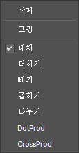 사용 가능한 경우, 연산자를 마우스 오른쪽 버튼으로 클릭하면 컨텍스트 메뉴가 표시됩니다. 이 메뉴를 사용하여 연산자를 고정하고, 혼합 모드를 변경할 수 있습니다.