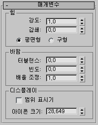바람 왜곡 오브젝트 아이콘의 크기(활성 단위)입니다. 드래그할 때 초기 아이콘 크기 값을 설정하여 바람 오브젝트를 만듭니다. 이 값은 바람 효과를 변경하지 않습니다.