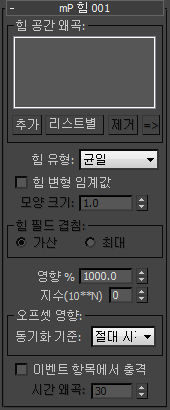- 힘이 파티클에 적용되는 강도를 백분율로 지정합니다. 기본값은 1000.0입니다.