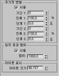 - 노이즈 변형에서 전체 주기를 만드는 시간입니다. 예를 들어 20을 설정하면 20 프레임당 하나의 사이클이 만들어진다는 의미입니다.