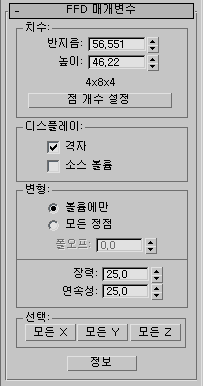 다음 옵션은 FFD에 의해 영향을 받는 정점을 지정하는 컨트롤을 제공합니다.