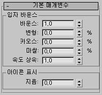 - 각 파티클이 바운스 설정에서 변화할 수 있는 양입니다.