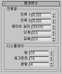 - 잔물결 왜곡 오브젝트의 로컬 Y축을 따라 잔물결 크기를 설정합니다. 진폭은 활성 단위로 표현됩니다.