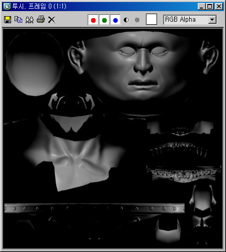분산 맵을 렌더링하는 동시에 3ds Max에서 법선 범프 맵을 TGA 이미지로 렌더링합니다. 이제 이 이미지를 살펴보고 혼합 결과를 확인합니다.