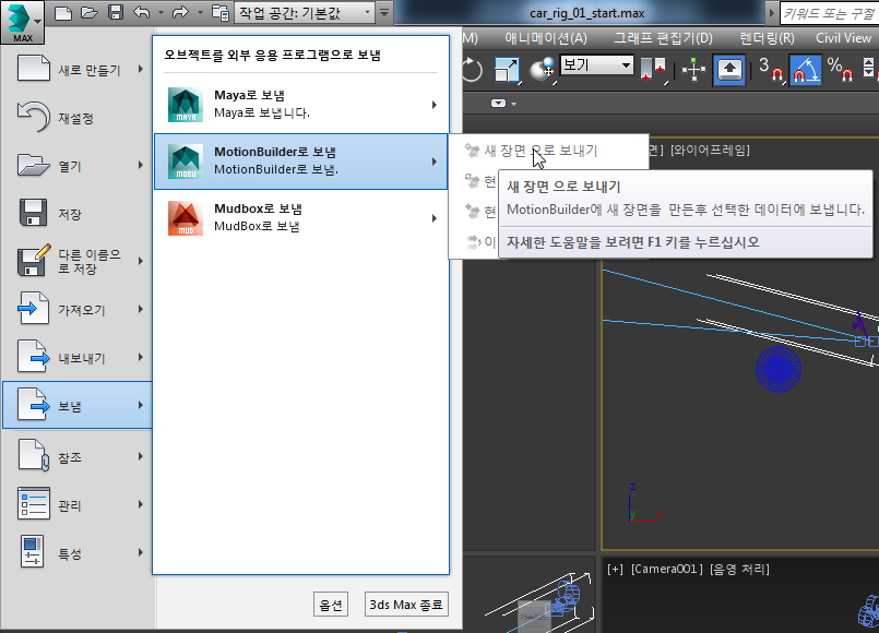 MotionBuilder가 아직 실행되고 있지 않으면 3ds Max에서 MotionBuilder를 시작합니다.