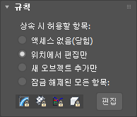 컨테이너는 액세스 없음 외에도 다른 사용자에게 다양한 수준의 액세스를 허용하는 세 가지 다른 규칙을 제공합니다. 이 절차에서는 위치에서 편집만 규칙에 대해 살펴봅니다.