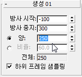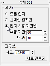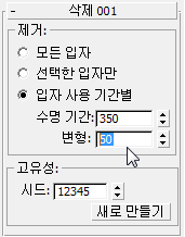 파티클 사용 기간별을 선택하면 수명 기간 및 변형 매개변수를 사용할 수 있습니다.