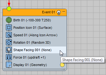 모양 직면 파티클은 항상 다른 파티클 쪽을 향합니다. 이 파티클은 보통 카메라입니다. 즉, 장면 형상이 실제보다 복잡하게 나타나도록 하는 재질이 파티클에 할당됩니다.