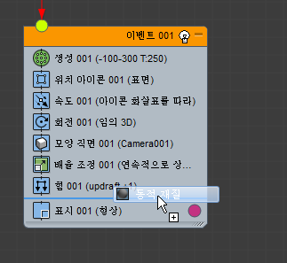 파티클은 노란색으로 시작하여 수명의 반이 지나면 초록색으로 바뀐 다음 수명이 끝날 때가 되면 파란색으로 변합니다.