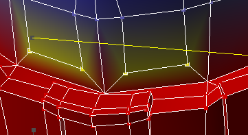 중심선 정점 중 캐릭터의 바로 왼쪽에 있는 세 정점은 너무 위에 있으므로 조정해야 합니다.