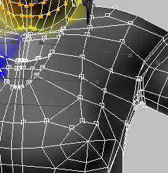 왼쪽: 어깨와 팔 윗부분 정점이 선택됨