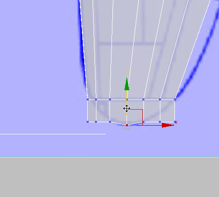 맨 위 뷰포트에서 영역 선택을 사용하여 정점 쌍(맨 위와 맨 아래)을 선택하고 을 사용해 이동하여 날개 끝의 곡선이 청사진 이미지와 일치되도록 합니다.