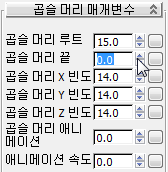 - 곱슬 머리 매개변수 롤아웃에서 곱슬 머리 끝을 0.0으로 설정합니다.