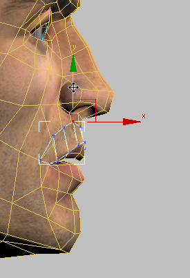 측면 뷰에서 작업을 확인해 콧수염 다각형이 모델의 원래 얼굴에서 너무 멀리 떨어지지 않도록 합니다.