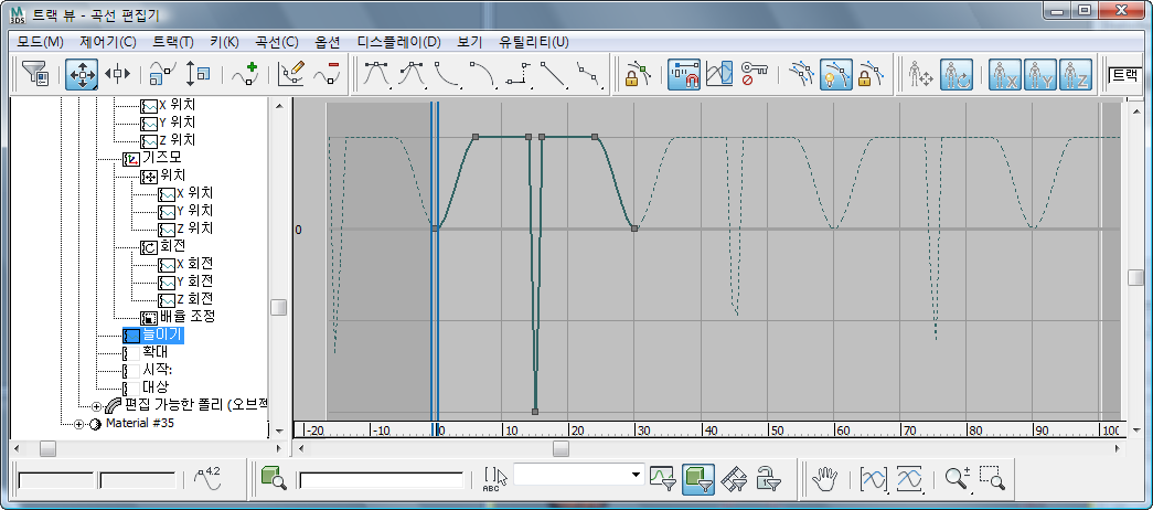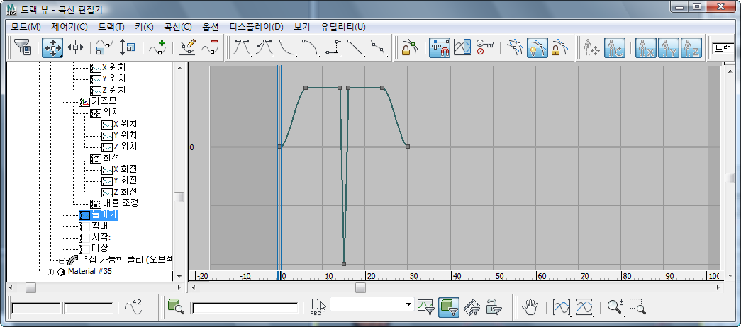늘이기: 베지어 부동과 같이 계층이 이루어집니다. 이 연습에서 사용하지 않는 여러 이전 위치, 회전 및 배율 조정 트랙을 표시하려면 아래로 스크롤해야 합니다.