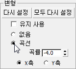 - 변형 그룹에서 곡선을 클릭하여 선택한 다음 곡률 값을 –4.0으로 설정합니다.