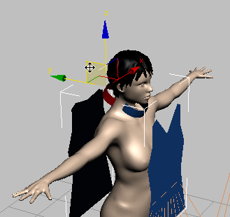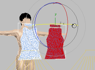 의상 수정자가 시간에 따라 애니메이션되는 시뮬레이션을 실행합니다. 의상이 몸체에 정확하게 맞으면 로컬 시뮬레이션(제동)을 다시 클릭하여 끕니다.