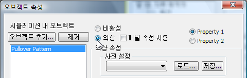 의상 시뮬레이션이 제대로 실행되려면 오브젝트 특성 대화상자에서 몇 가지 조건을 설정해야 합니다.