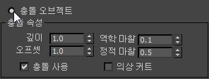 - 충돌 특성 그룹에서 간격띄우기 값을 0.15로 변경합니다.