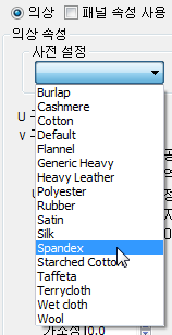 - 사전 설정 드롭다운 리스트에서 Spandex를 선택합니다.