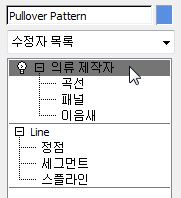 - 수정자 스택에서 의류 제작자 항목을 클릭하여 이음새 하위 오브젝트 수준을 종료합니다.